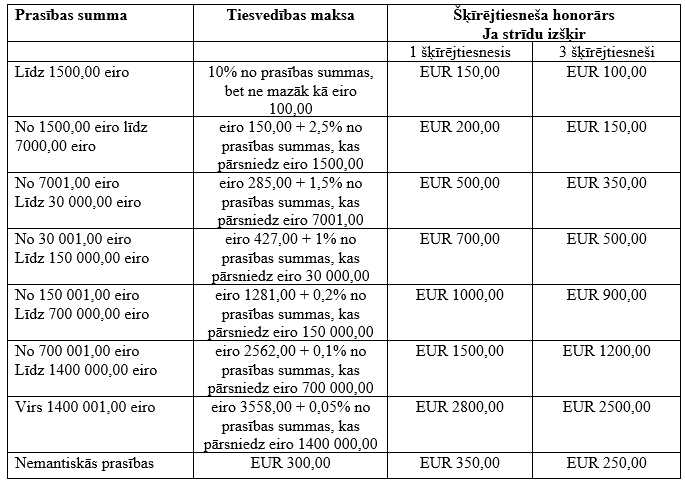 - Par paziņojuma par prasības saņemšanu nosūtīšanu katrai papildus pusei, izņemot vienu no pieteicēja puses un atbildētāja puses un/vai uz katru papildus adresi (otro, trešo utt.) un/vai atkārtoti ir iekasējami papildus kancelejas izdevumi 30,00 EUR (+21% PVN)apmērā par katru papildus pusi, papildus adresi vai atkārtotu izsūtīšanas pieprasījumu.
